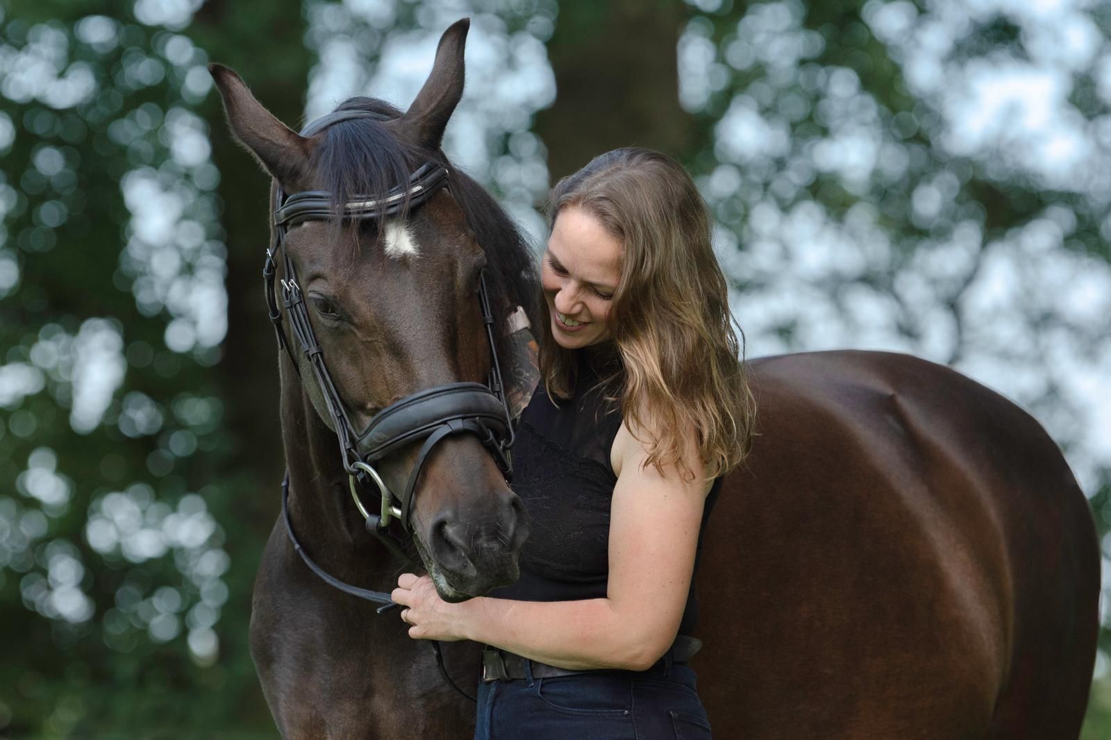 Dit was het moment waarop ik besloot psychologie te studeren en dieper in de dynamiek tussen mens en paard te duiken. Door persoonlijke ervaringen had ik al vaak ontdekt wat paarden me leerden en hoe ze me hielpen dichter bij mijn ware zelf te komen. De daaropvolgende jaren waren vol uitdagingen en confronterend voor mij. In 2011 kreeg ik een ongeluk waarbij ik met paard en wagen over de kop ging en een hersenletsel opliep. Het kostte me een jaar van revalidatie, en in 2012 volgde helaas een auto-ongeluk dat mijn herstel nog verder vertraagde. Deze jaren boden me de kans om mezelf vanuit een nieuw perspectief te leren kennen, en mijn paard, Shadow (zie foto), leerde me om naar mezelf te kijken, mij te ondersteunen in moeilijke tijden en vooral om uitdagingen aan te gaan en oude patronen te doorbreken wanneer ik vastliep.